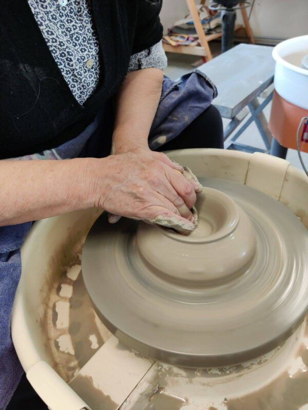 Je bent vast nieuwsgierig geworden. In een workshop van 2,5 uur kun je individueel of samen met iemand anders kijken of het draaien met klei iets voor jou is. Omdat je hooguit met 2 personen aan het draaien bent is alle tijd en aandacht voor jou tijdens deze tweeënhalf uur. We gaan samen aan de slag met het centreren van de klei, het optrekken van de wanden en het vormen van je kommetje, bakje of potje. Je gaat na deze workshop dus gegarandeerd met een werkstuk van keramiek “naar huis”, dwz. je oefent met meerdere bolletjes klei en aan het einde van de workshop kies je daaruit een paar werkstukken (maximaal 3). Ik zorg dan dat het afgedraaid, geglazuurd en gestookt wordt. Je kiest zelf een glazuur uit. Na ongeveer drie/vier weken kun je dan je werkstuk(ken) op komen halen. Een workshop bij mij is kleinschalig (maximaal 2 personen) met veel aandacht voor het individuele niveau. Kosten € 60,00 pp inclusief materiaal en stoken. De datum is altijd in overleg. In augustus 2024 is het atelier gesloten in verband met vakantie.